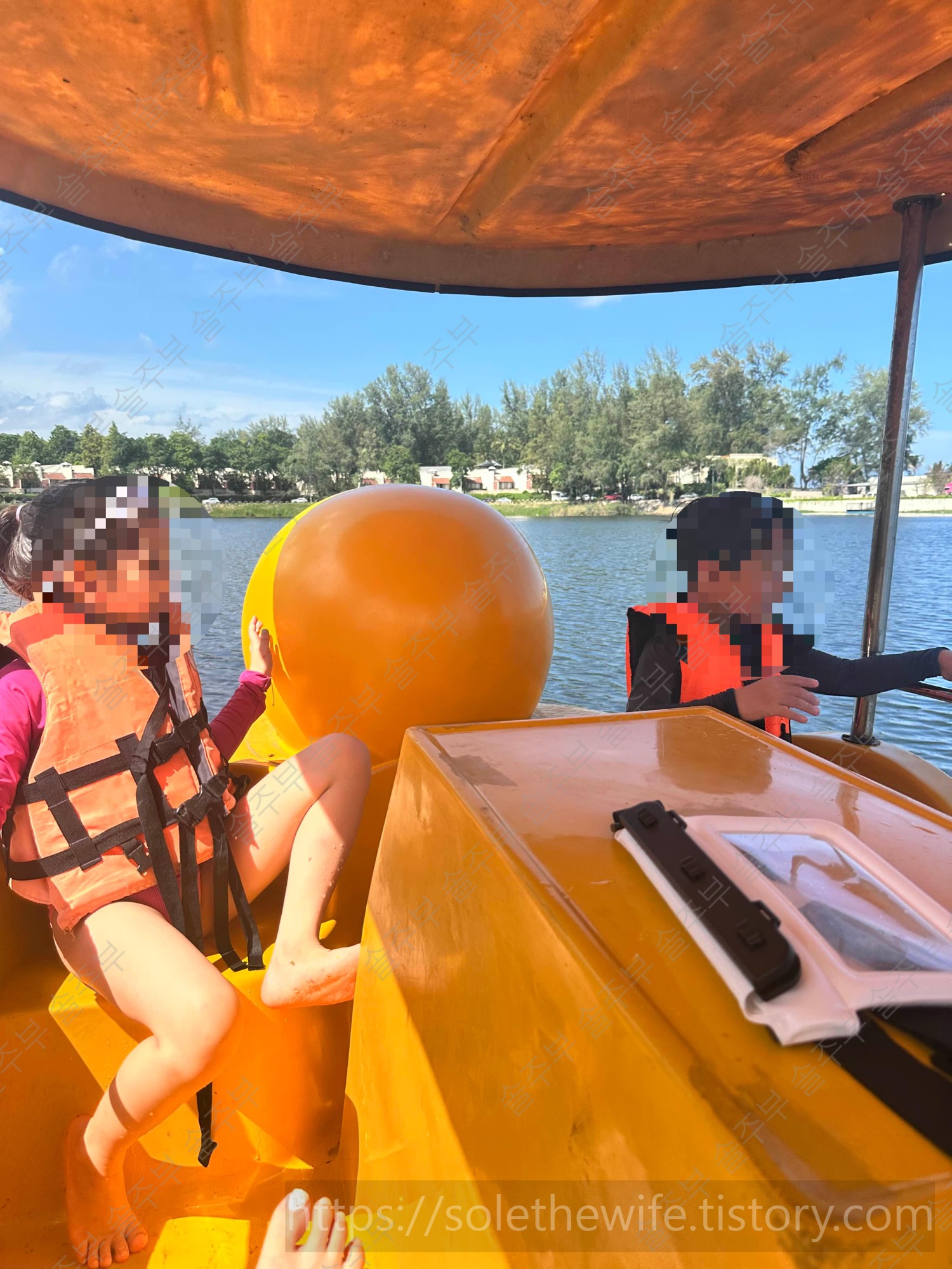 한국에서는 땀 흘리기 싫어서 절대 안 타주는 덕보트인데, 이곳에서 타주니 아이들이 매우 즐거워했다.