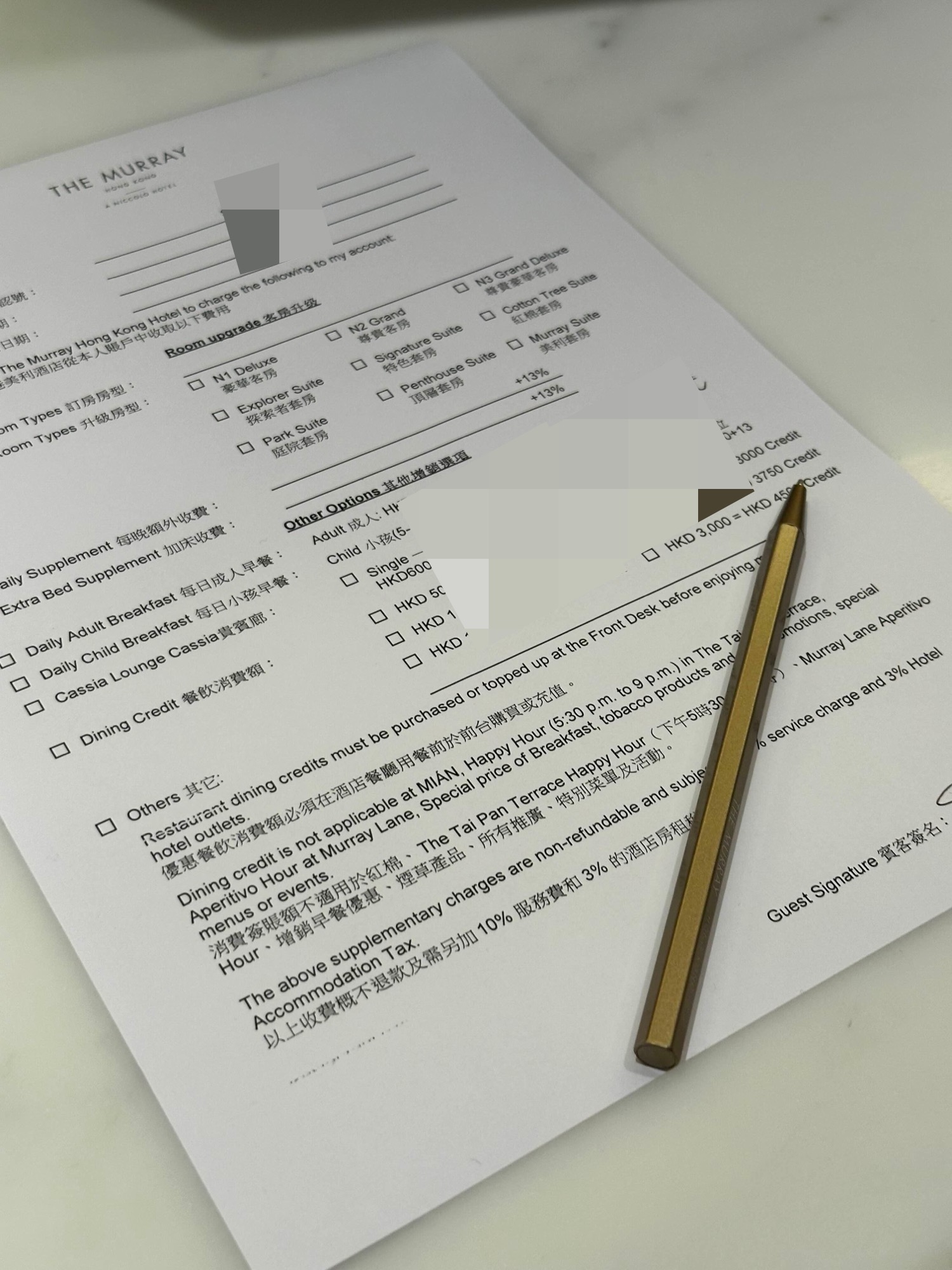 더 머레이 홍콩 니콜로 호텔 로비, 체크인